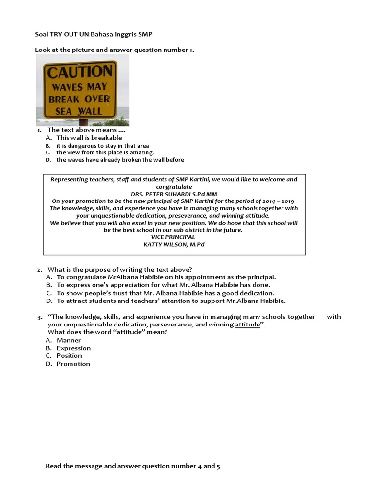 Soal Try Out Un Smp Bahasa Inggris Sma It Venice Paper