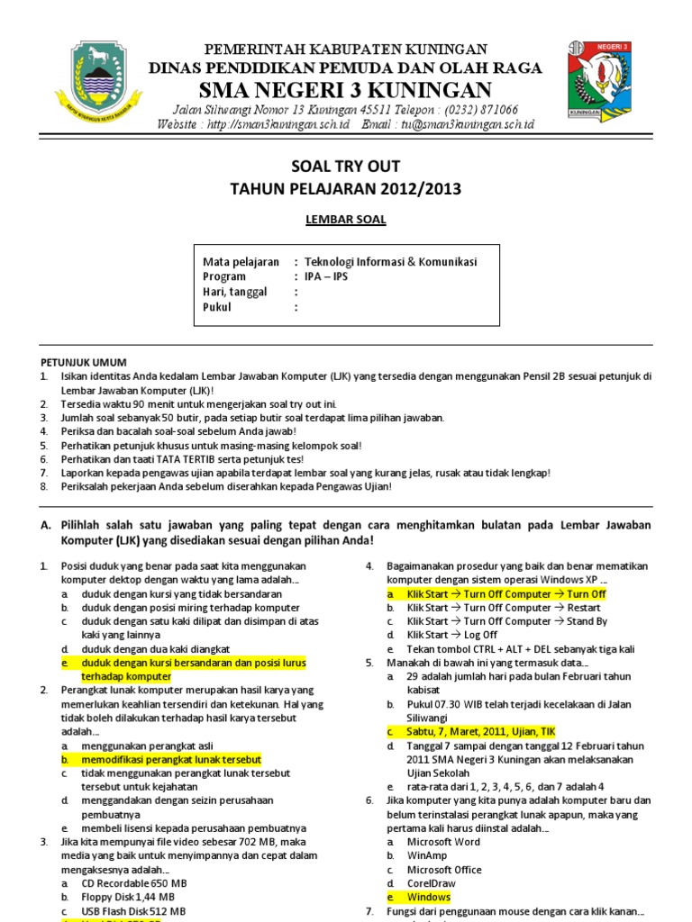 Soal Ujian Sekolah Tik Sma Dan Jawabannya Pdf Ilmusosial Id