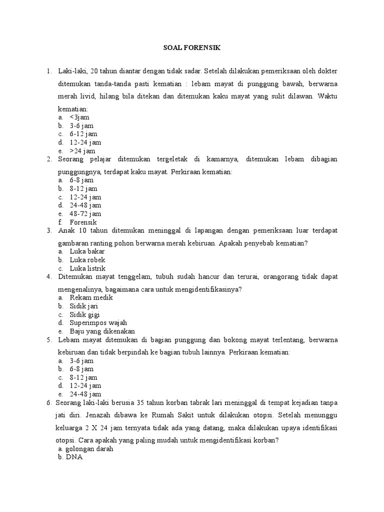 Kumpulan Soal Forensik ums x4e6j6o7z9n3. Contoh Soal UKMPPD dan Pembahasan Part 1. Soal forensik ini dikumpulkan dari berbagai sumber.